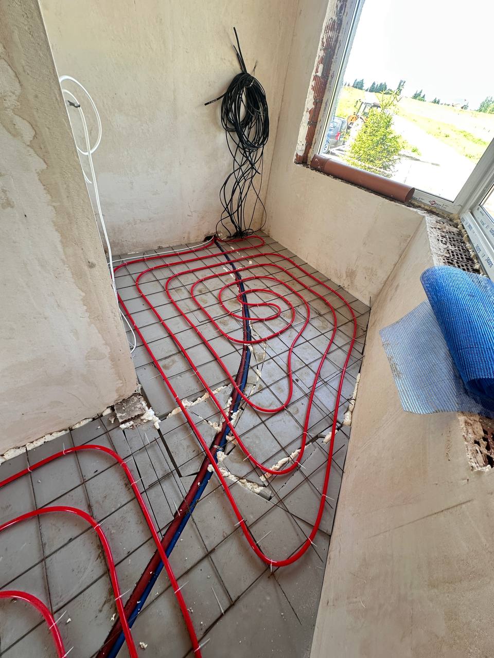 Монтаж водяного теплого пола, на балконе